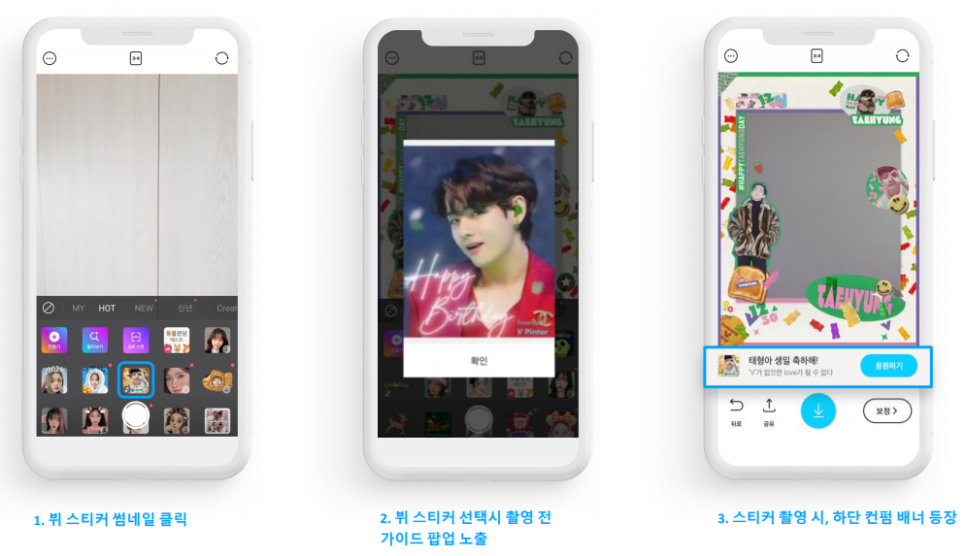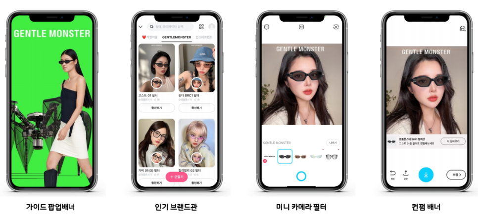 → 필터가 나타나며 촬영 시, 하단 컨펌 배너가 등장하는 것까지