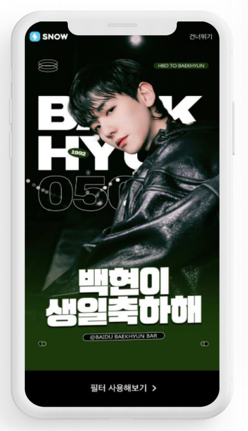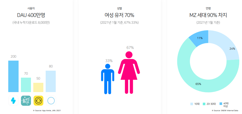 스노우는 국내 카메라 앱 유저 80% 이상이 사용하는 카메라 앱인데요!