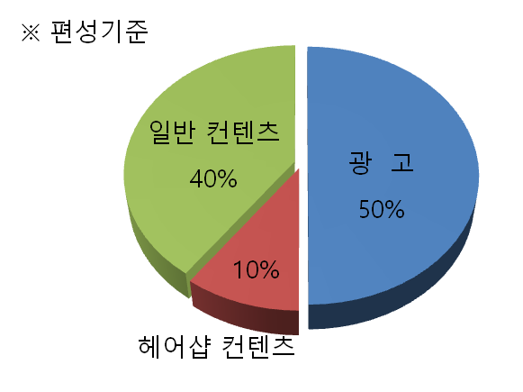 1시간 내 컨텐츠와 광고의 비율은 5:5입니다.