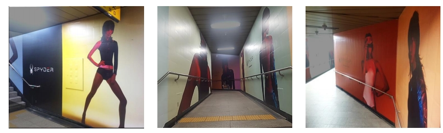 역사 내 출구 방면 및 계단 등에 설치된 액자형 매체입니다.
