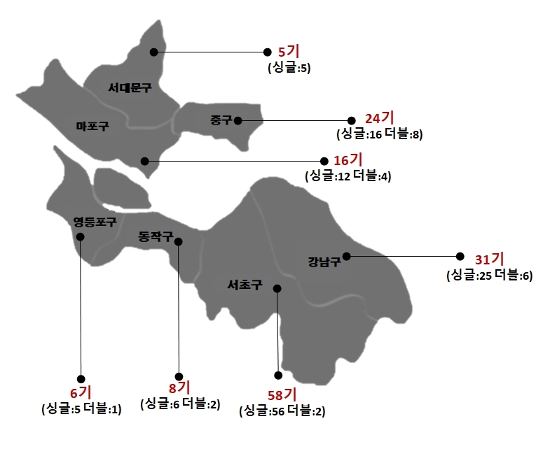 서울에 설치된 현황은 싱글 125기, 더블 23기이며