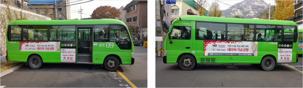 지금까지 마을버스 외부/내부 광고에 대한 소개였습니다.