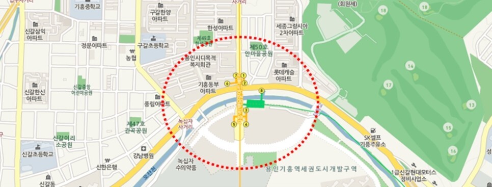 기흥구청, 시립도서관이 있으며 다양한 학군이