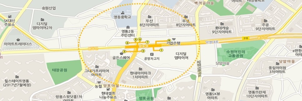 주변 상권으로는 영통패션타운/골든스퀘어/