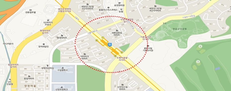 주거 단지가 밀집되어 있는 지역입니다.